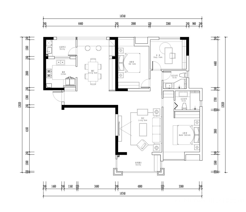 小区:中海城南华府 面积:134㎡ 户型:三居 风格:现代简约风格