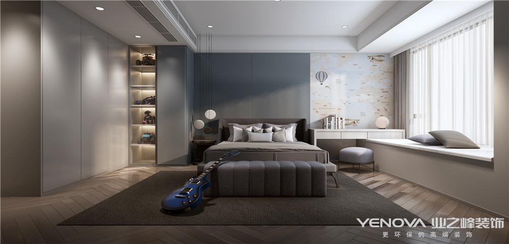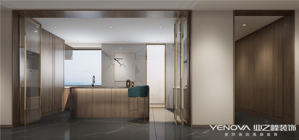 中国的传统的文化精神,是重视人与自然的融洽,本案布局客厅带有“闲暇”的感受,加以客厅玻璃推拉门带来室外充沛的采光,屋外花园靓丽的景色也随之进入室内,客餐厅以轻松的开放式格局,为屋主营造了一个远离喧嚣的避风港,能体会到不一样的温暖与惬意。原户型厨房空间狭小,使得动线紊乱,所以在设计中扩大了厨房面积,中间设置中岛台,空间呈围合状,使动线更加流畅,将空间开放出来,同时也增加南北之间空气流通与采光。本案在吊顶的处理上没有做过多的造型设计,让各空间的功能划分更为明晰,尽可能的释放空间。