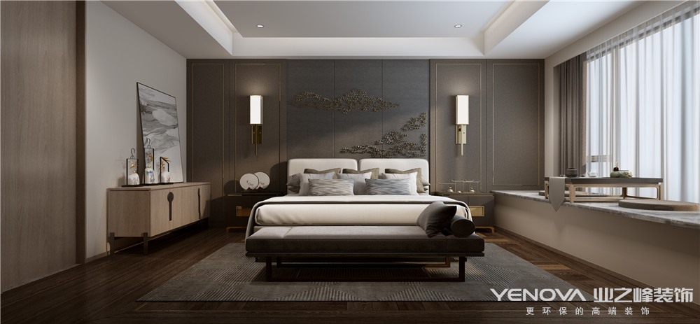 170㎡三居新中式风格蔚蓝卡地亚花园城