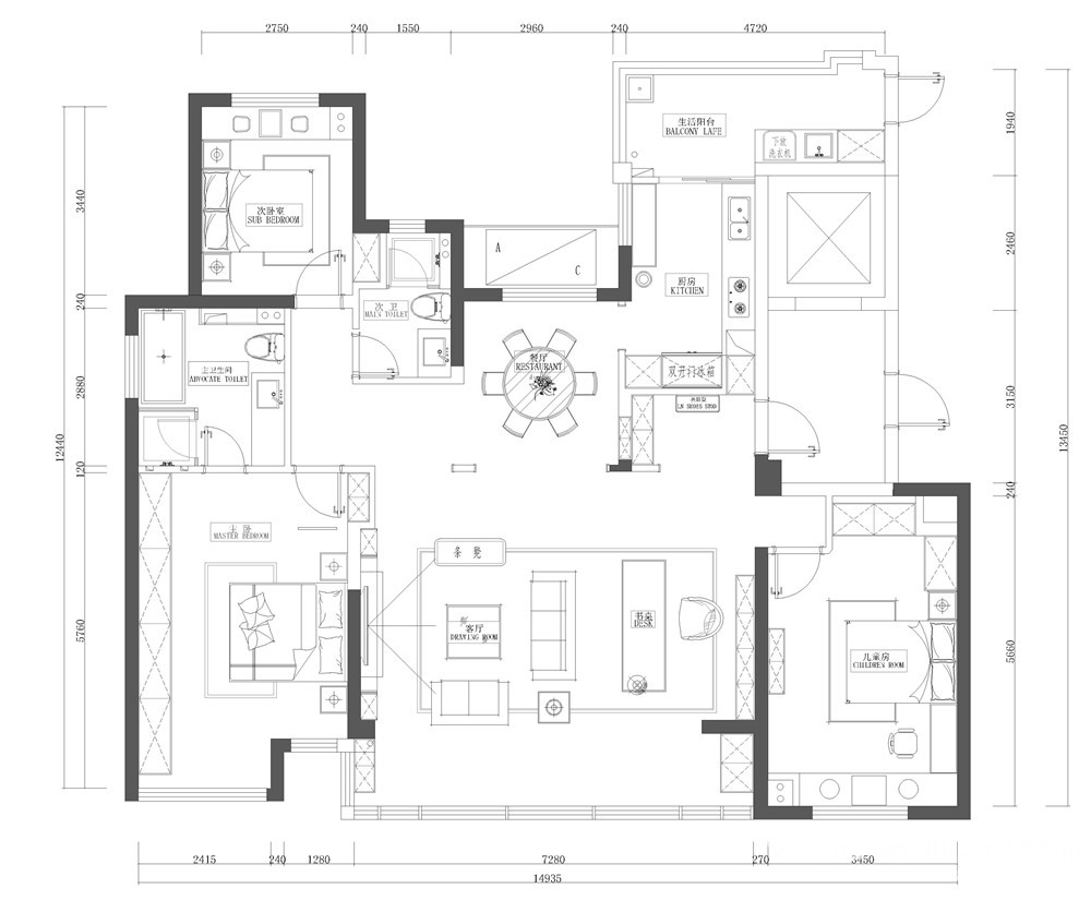 小区:龙湖紫宸 面积:130㎡ 户型:三居 风格:新中式风格