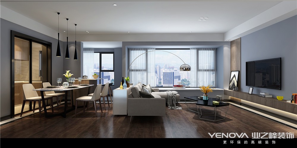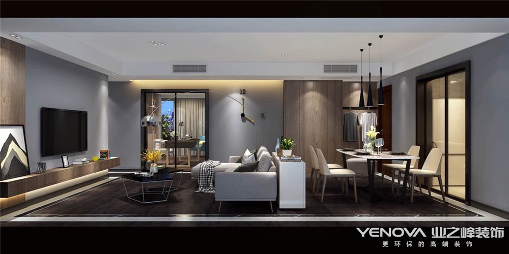 小区:中央鹭洲 面积:110㎡ 户型:三居 风格:现代简约风格