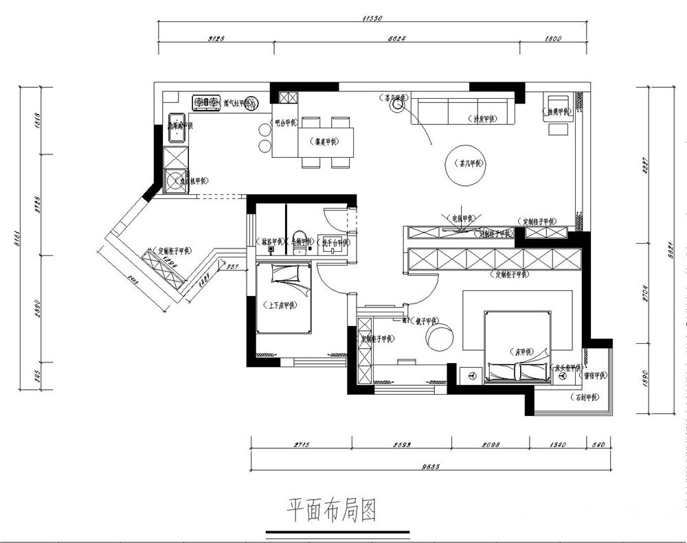 小区:北新润园 面积:96㎡ 户型:二居 风格:现代简约风格