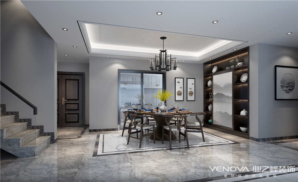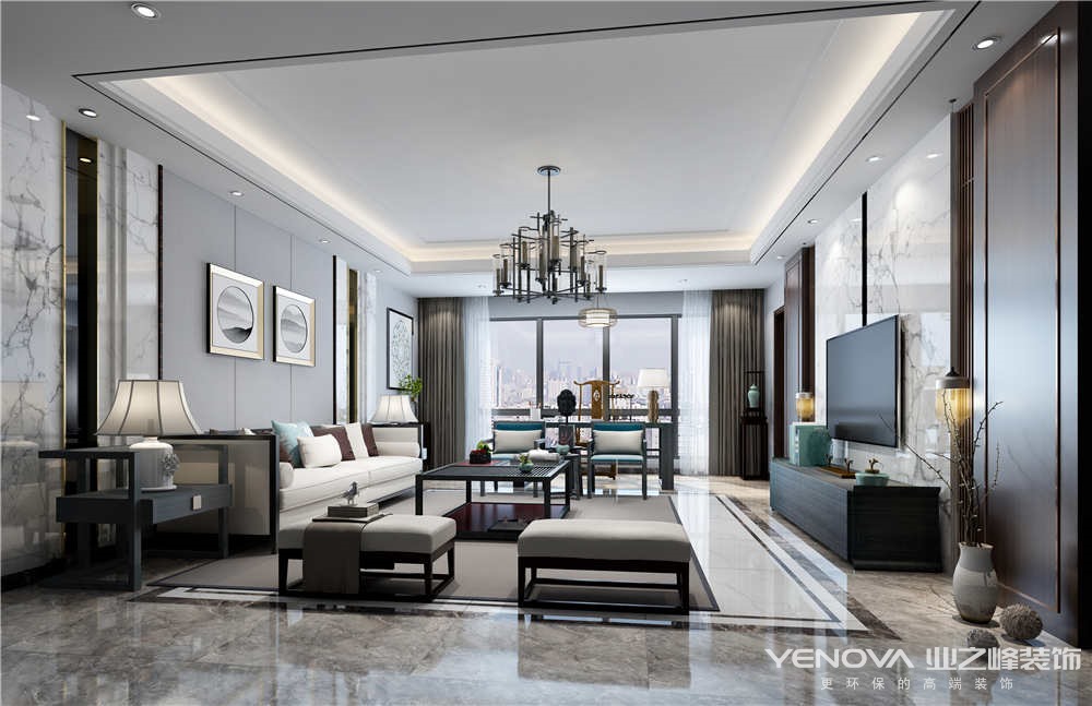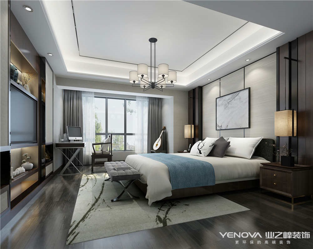 本方案总面积170.3平,四室两厅,设计风格以现代为主。本案的整体结构和业主的家庭成员组成基本保持一致,所以在功能布局上没有多大的变化,应业主自己要求在现代风格的基础上加入适当的新中式元素,两者相互交融形成一种简洁、放松的空间感。整个空间具有多变性,书房也可兼客房使用,两个生活阳台满足了一家五口的生活需要,将一楼的次卫改为衣帽间也是更大的增加全家的储物空间。也是为了满足男主人喜欢喝茶的想法,在视野很好的客厅外增加了喝茶的区域,让他回到家就能享受和家人在一起的愉快时时光。