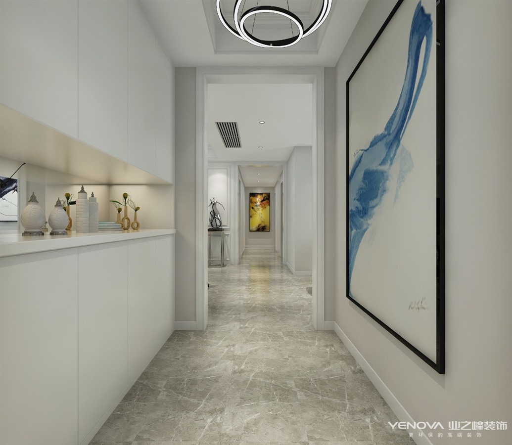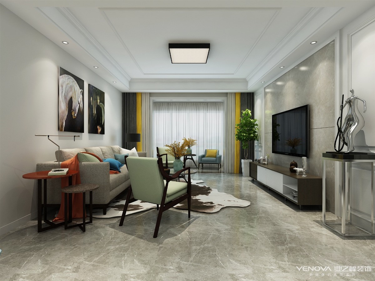 通过家具、吊顶、地面材料、陈列品甚至光线的变化来表达不同功能空间的划分,而且这种划分又随着不同的时间段表现出灵活性、兼容性和流动性。在材料之间的关系交接上,现代简约设计需要通过特殊的处理手法以及精细的施工工艺来达到要求。其次,现代风格的色彩设计受现代绘画流派思潮影响很大。通过强调原色之间的对比协调来追求一种具有普遍意义的永恒的艺术主题。装饰画、织物的选择对于整个色彩效果也起到点明主题的作用。
