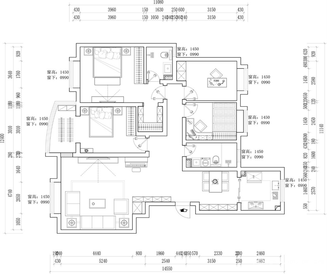 133㎡三居现代简约风格挚信樱花园