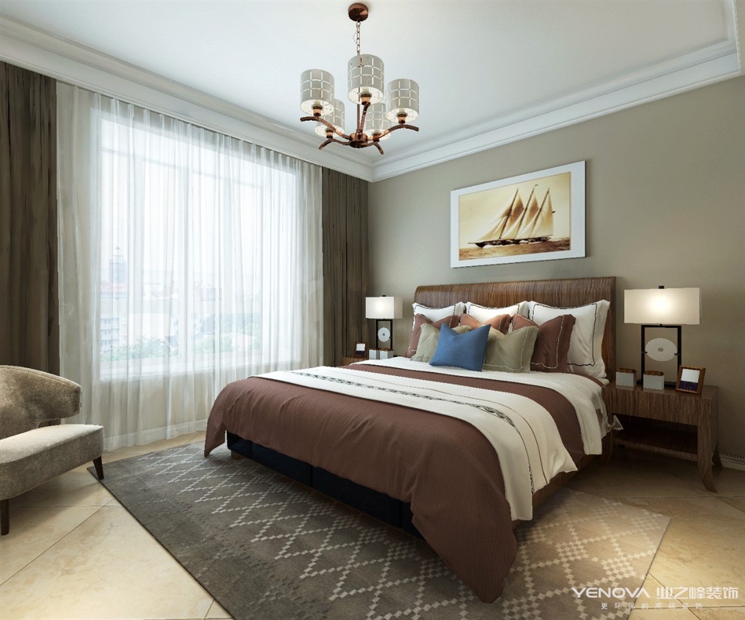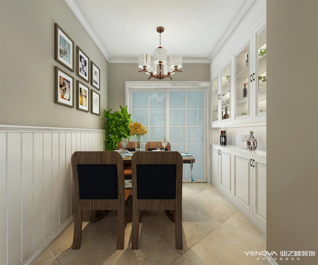 在居室的空间的处理上,力求表现自然轻松的情趣,设计上讲求色彩关系,注重大小色块间的组合,地域性的后期配饰融入设计风格之中。在室内,窗帘、桌巾、沙发套、灯罩等均以低彩度色调和棉织品为主。素雅的小细花条纹格子图案也是常用的元素,采用低彩度、线条简单且修边浑圆的木质家具与彩色玻璃吊灯相得益彰。