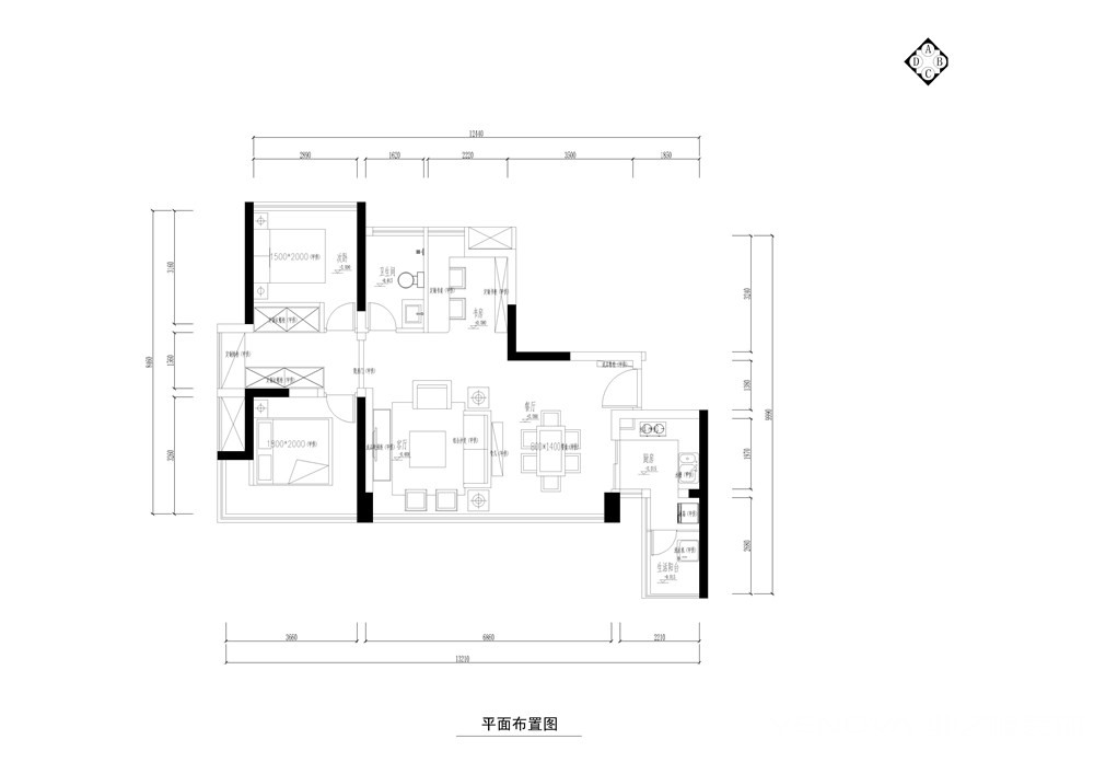 小区:中粮鸿云 面积:93㎡ 户型:三居 风格:现代简约风格