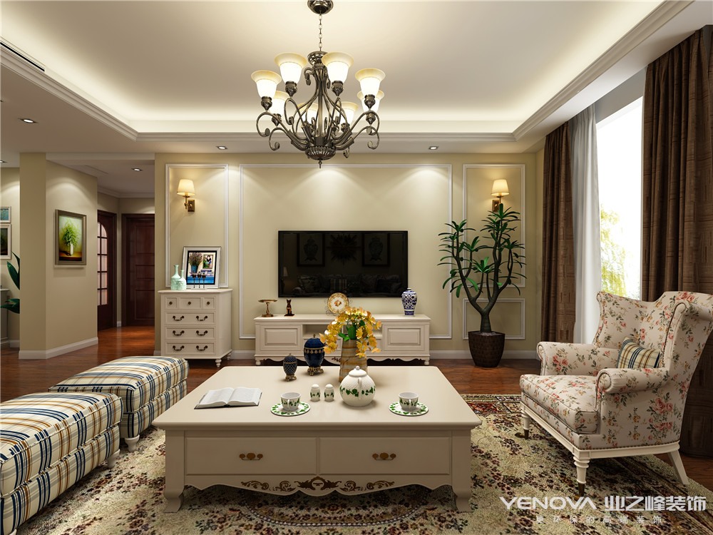 本案为欧式田园风格。欧式田园更注重温馨的一面,同样也不放弃与自然的融合,求心里对自认的回归感,这种风格追求的是一种生活的安逸和一种放松的舒适的生活氛围。