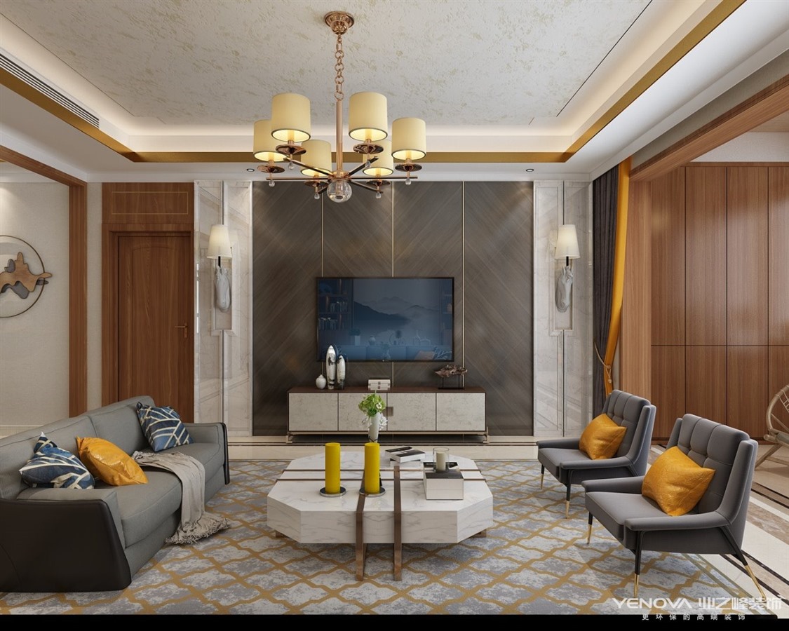 小区:绿地海珀天沅 面积:190㎡ 户型:四居 风格:新中式风格