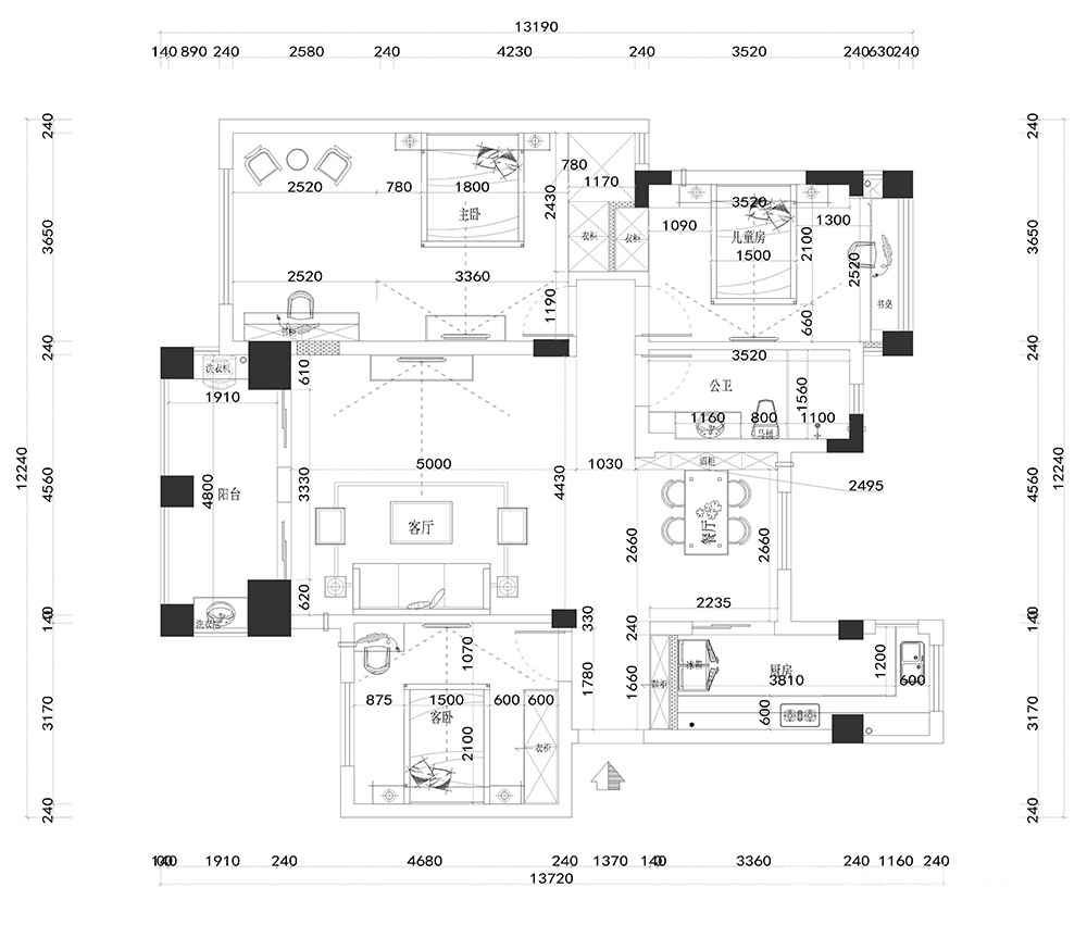 小区:香溢花城 面积:113㎡ 户型:三居 风格:港式风格