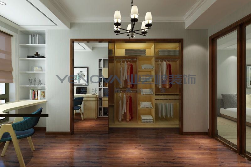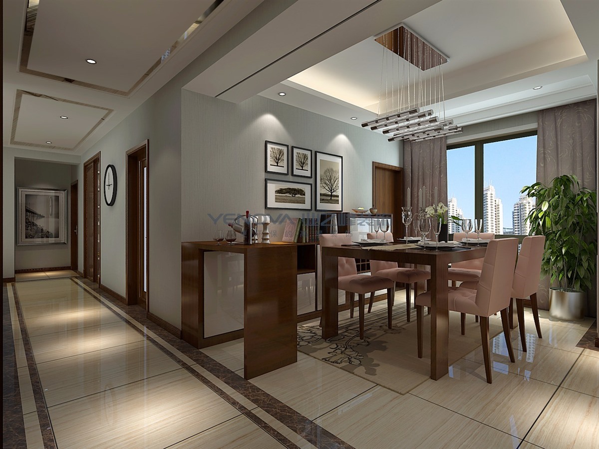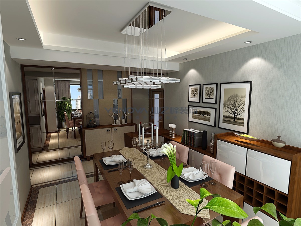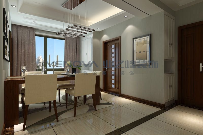 本案中业主喜欢一个安静,祥和,看上去明朗宽敞舒适的家,来消除工作的疲惫,可以让家人忘却都市的喧闹。因客户需求整体采用新中式风格,在设计中把主人的个人喜好,品味等也加进去,既满足了业主居住的需求,又迎合了中式家具的设计风格