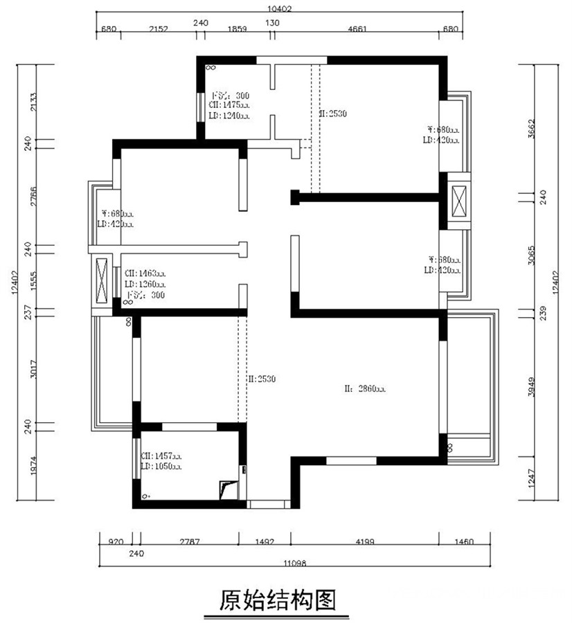 整个户型南北通透,户型方正,房屋的整体拆改墙不大。