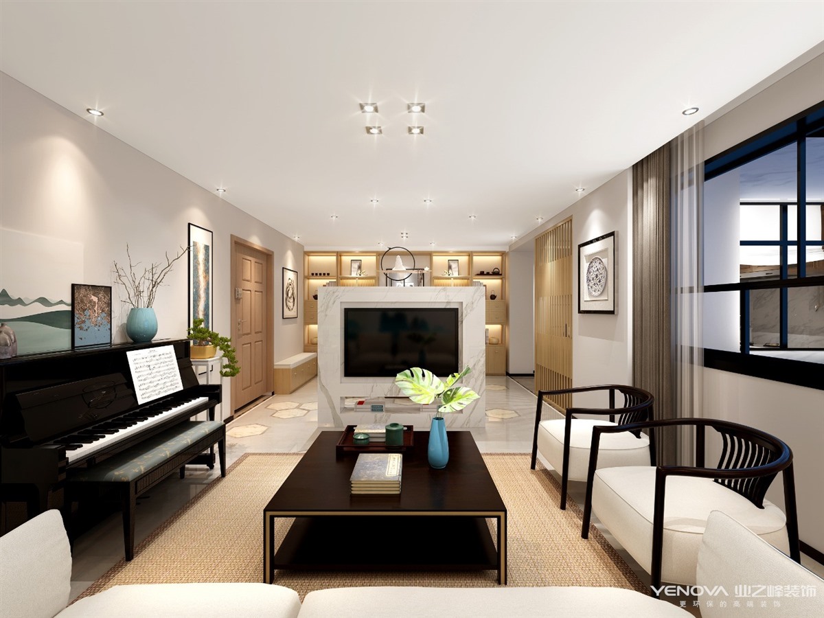本案例设计,秉承“以人为本”原则,业主夫妻都35多岁、知识分子、一家3代同堂,房子是平层,在空间划分上:该户型动静分区明显,“动区”用于家庭集中、待客、娱乐功能,“静区”用于家人休息区域及业主看书学习区域。