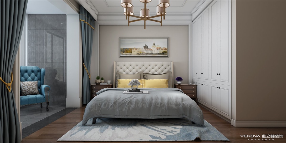 整体装饰韵味既含有古典美式的华贵又有现代风格的简约,运用清亮的色彩,从硬装到软装追求空间的干净与利落,不做复杂的空间布局,让室内充满温馨和舒适的感觉,带给人休闲式的浪漫生活。 <