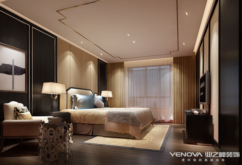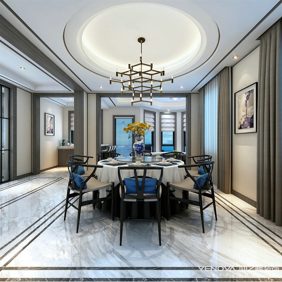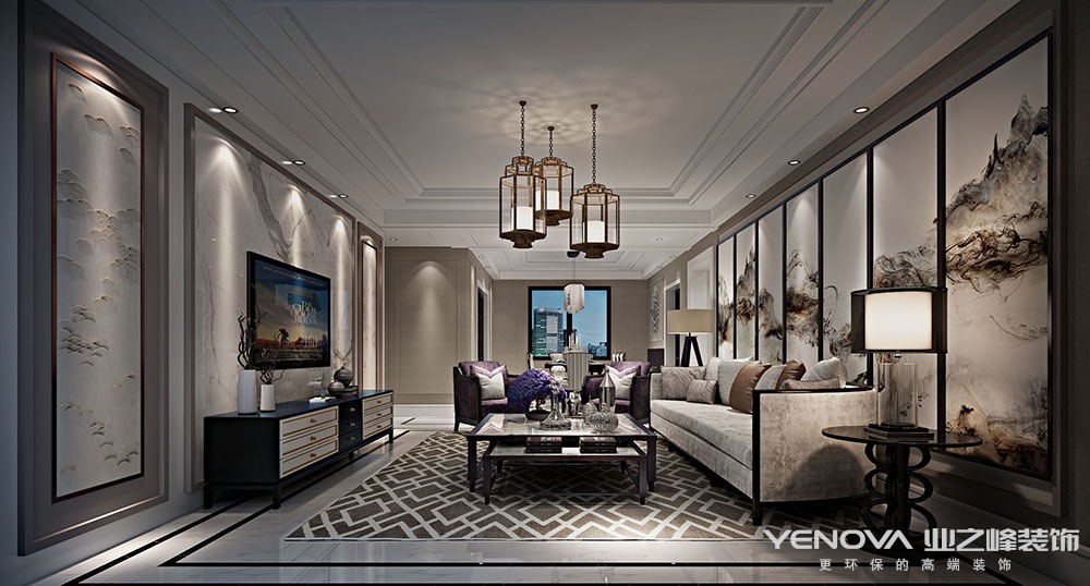 设计说明:本案定位于新中式风格,设计师以“山水如画,层峦叠翠”为设计灵感,融合传统和现代、东方和西方的文化元素,诠释居主理想生活的品质和乐趣,营造极具人文、禅意的舒适空间。