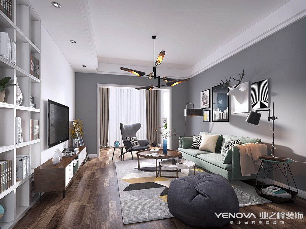 小区:中央香榭 面积:105㎡ 户型:三居 风格:北欧风格