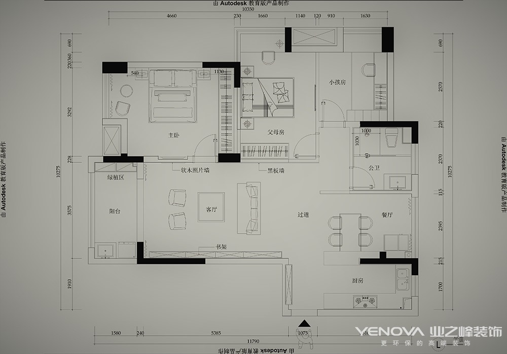 设计说明:现代简约空间组织不再是以房间组合为主,空间的划分也不再局限于硬质墙体,而是更注重会客、餐饮、学习、睡眠等功能空间的逻辑关系。通过家具、吊顶、地面材料、陈列品甚至光线的变化来表达不同功能空间的划分,而且这种划分又随着不同的时间段表现出灵活性、兼容性和流动性。