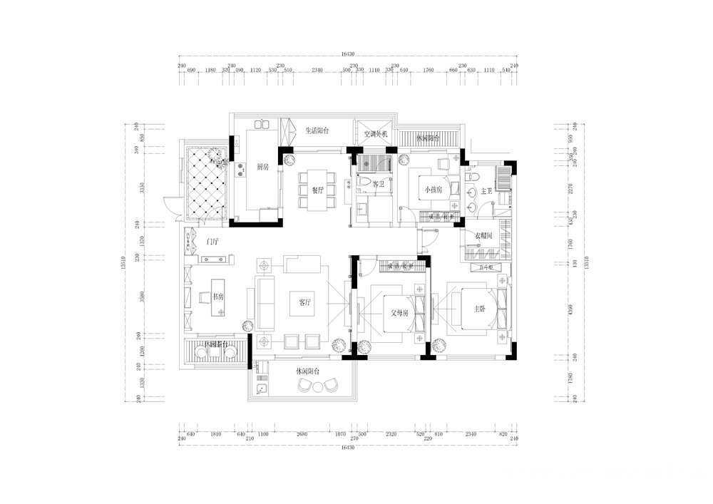 小区:珠江御景湾 面积:132㎡ 户型:三居 风格:混搭风格