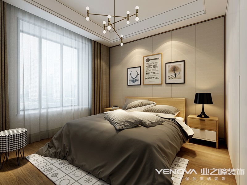 方案为整个设计风格为简约,这种装修风格往往具有非常简洁温馨气息,空间要更明快光鲜,在卧室的布置较为温馨,在卧室的设计中主要以功能性和实用舒适为考虑重点,设计中不设置顶灯,多用温馨柔软的光源来装点。