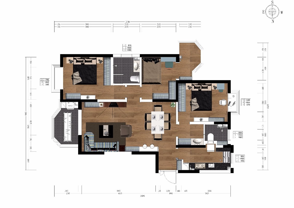 小区:华清学府城 面积:152㎡ 户型:三居 风格:现代简约风格