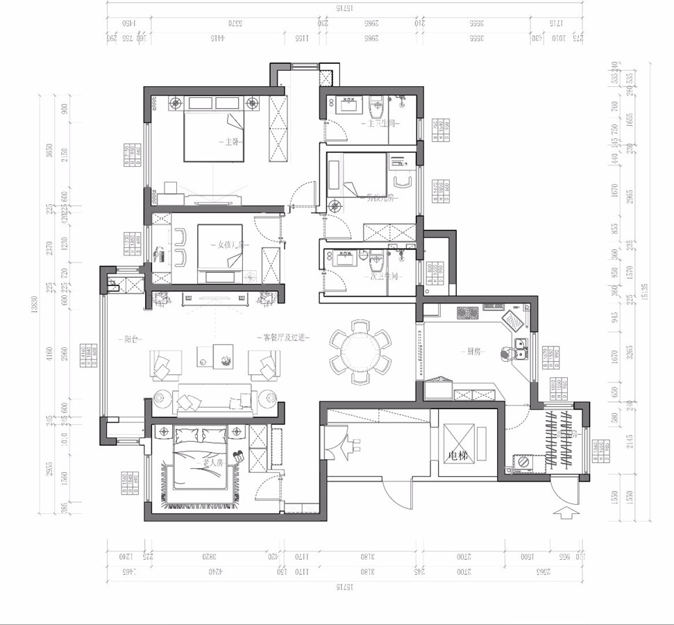 小区:高科朗山 面积:157㎡ 户型:四居 风格:简欧风格