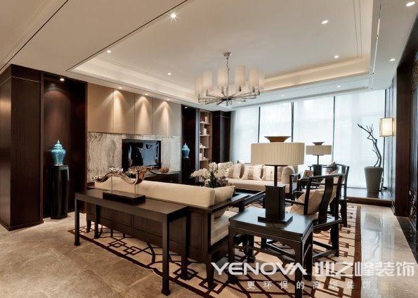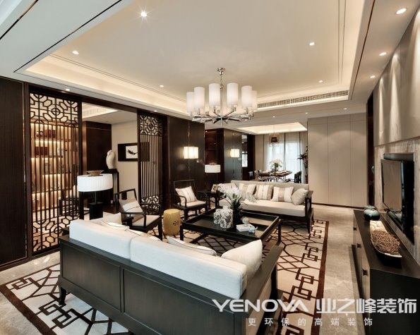 案例名称:中式轻奢风格 兰溪上院装修设计 小区:兰溪上院施工单位:别墅大宅设计业之峰装饰 设计师:刘晓儒面积:145㎡ 基础预算:80000 主材预算:160000材料说明:1进口. 德国都芳水性漆 飞利浦弱电 四川特变电工强电线 进口德国 德爱威防水 美国理想接线端子。 德国威森纳米ppr水管, 北京华翌联塑电线管。主材: 金牌厨柜 大自然木地板 TATA木门 汉斯格雅 大金空调 .西蒙开关面板。等等设计说明:本案例风格为中式轻奢,元素与现代材质巧妙兼糅,借助丰富色泽、层次的搭配,呈现视觉交织的美感,让每一处都精彩绽放。客厅空间有着一气呵成的轻奢气派,木质品、布艺及金属线条等多样的材质运用在空间中,让空间更加灵动而不失活泼。石块般切割的茶几,时尚带有中式风格的艺术吊灯,这些材质的组成更让这个空间有艺术性。电视背景和沙发背景把中国画融入画面,带有肌理的中国画放到空间中觉得不是很突兀,配上造型性的金属线条,让空间达到一种平衡。