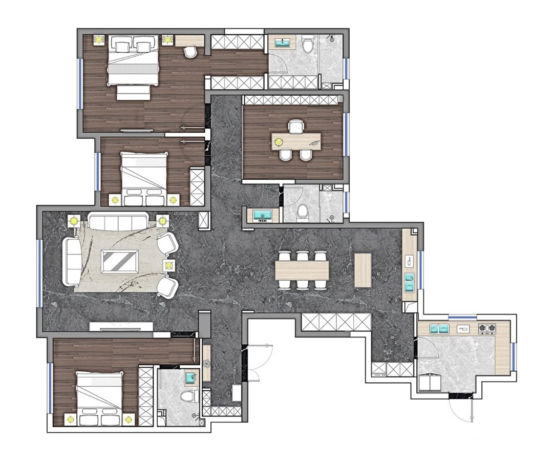 小区:中建国熙台 面积:212㎡ 户型:平层 风格:新中式风格
