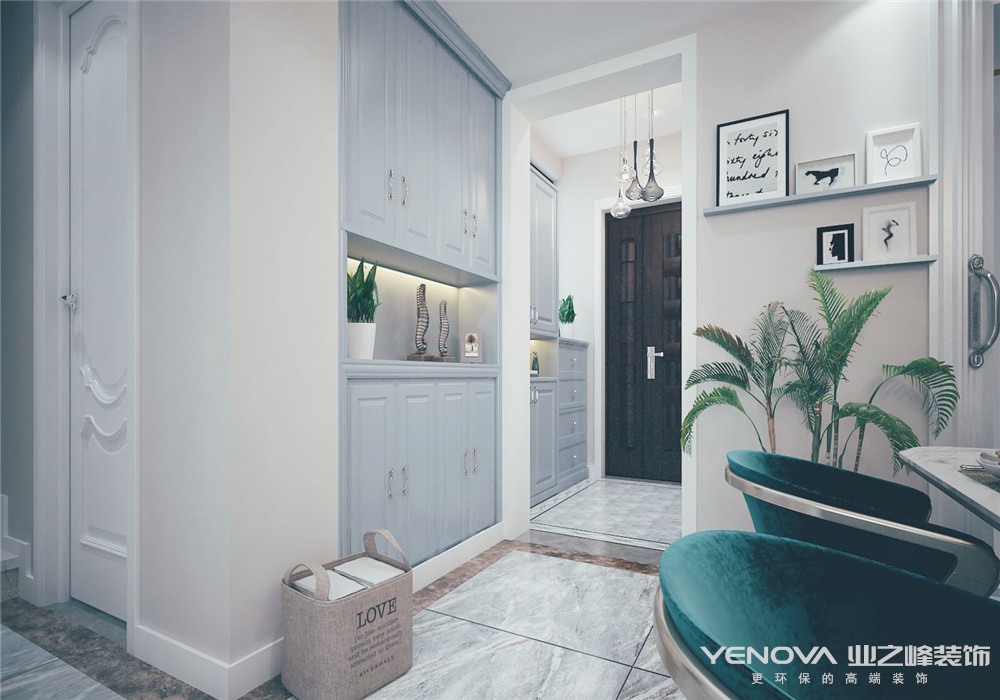 本方案采用轻奢的设计理念,打造以灰色调点缀的欧式典雅风格,摒弃传统护墙板得到经典白色和橡木色,利用高级灰的点缀让整个空间像一只高冷的海鸟,空灵的游荡在浩瀚的海洋上。