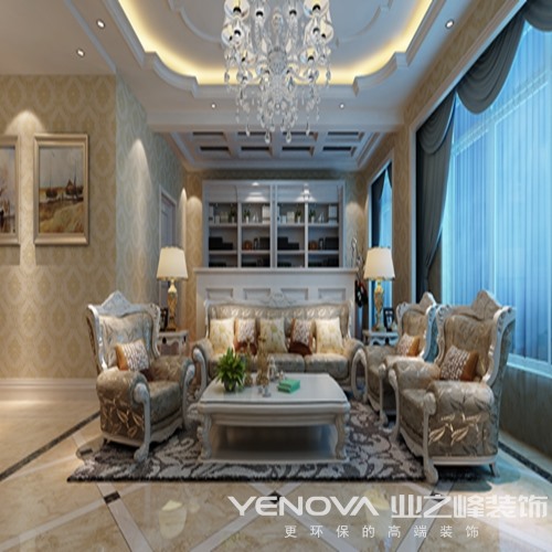 高雅而和谐是新古典风格的代名词。白色、金色、黄色、暗红是欧式风格中常见的主色调,少量白色糅合,使色彩看起来明亮、大方,使整个空间给人以开放、宽容的非凡气度,让人丝毫不显局促。