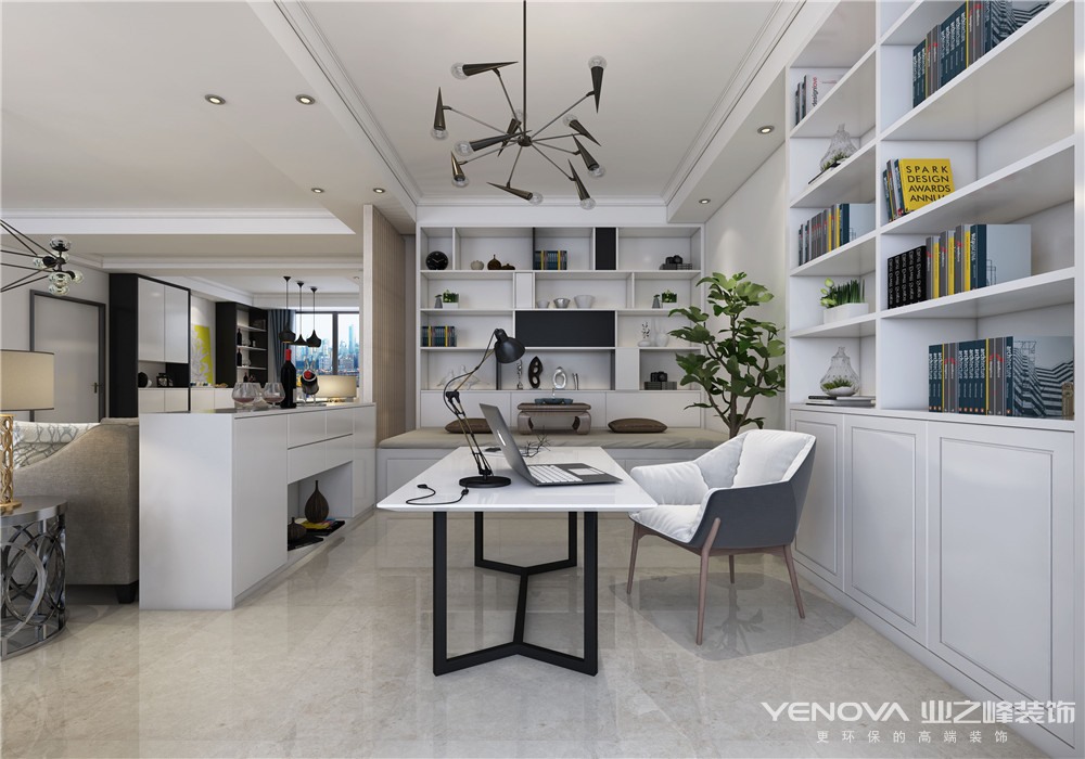 本案位于青岛开发区,客户为海军退休人员,喜欢简洁大方,喜欢大空间,整个方案将书房和客厅链接,阳台原本的推拉门拆除,做地暖和封阳台,保证冬天的温度,在此基础上。里用石膏线和吊顶的先行,做大空间的分割,几何线条修饰,色彩明快跳跃,外立面简洁流畅,装饰线、带、块等异型屋顶为特征,立面立体层次感较强,外飘窗台外挑阳台或内置阳台,合理运用色块色带处理,整个空间没有过分的装饰,一切从功能出发,讲究造型比例适度、空间结构图明确美观,强调外观的明快、简洁。体现了现代生活快节奏、简约和实用,但又富有朝气的生活气息,家具突出强调功能性设计,设计线条简约流畅,家具色彩对比强烈,这是现代简约家具的特点。