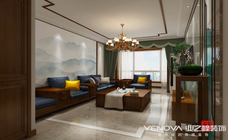 小区:尚水名苑 面积:130㎡ 户型:三居 风格:新中式风格