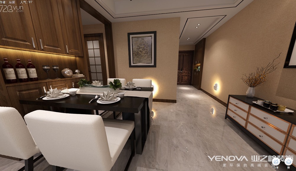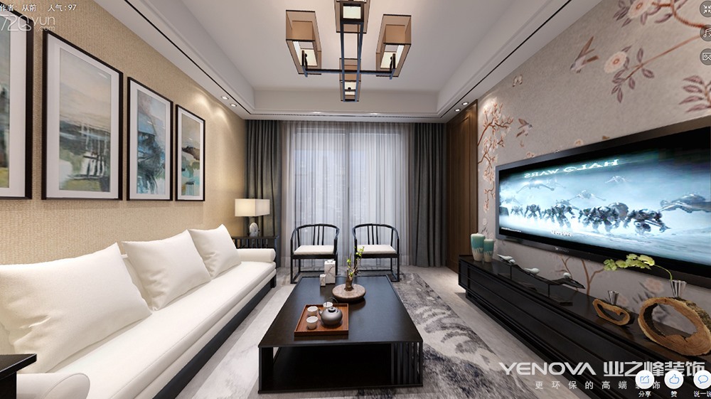 小区:万达文化旅游城 面积:97㎡ 户型:三居 风格:新中式风格