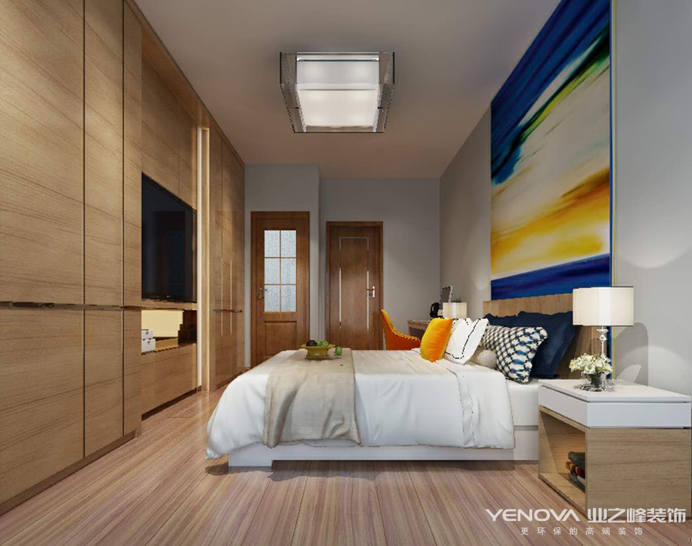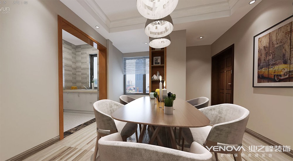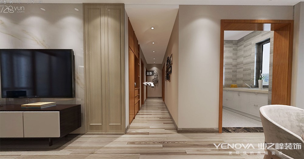 本案的居家格调整体定位为灰白色调的简约现代,简洁,干练,让家中呈现一种自然的舒适。浅色的地板砖,温馨的暖色墙面,映衬着深木色木门及装饰柜与原木家具。冷暖相间,不同质感和形象的点光源在不同的空间相互穿插使用。整体设计洋溢着现代风情。色泽自然而富有灵性,整体设计洋溢着现代风情。