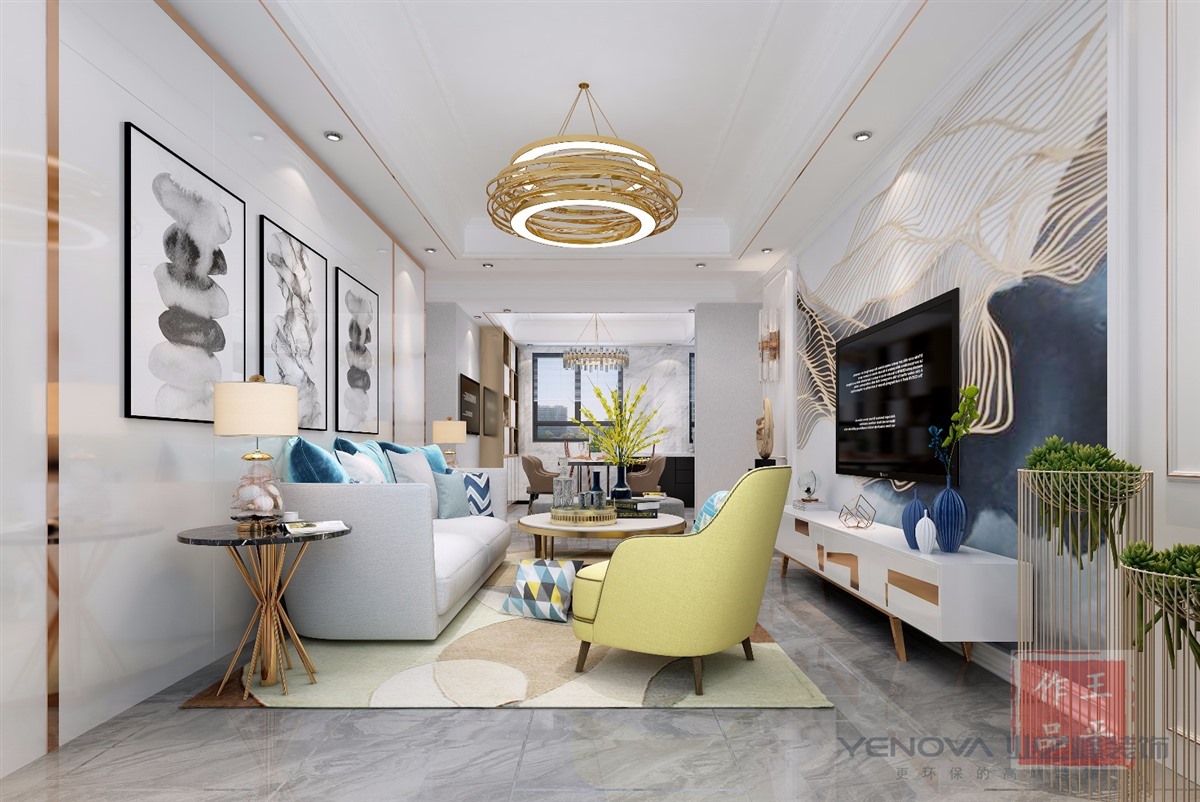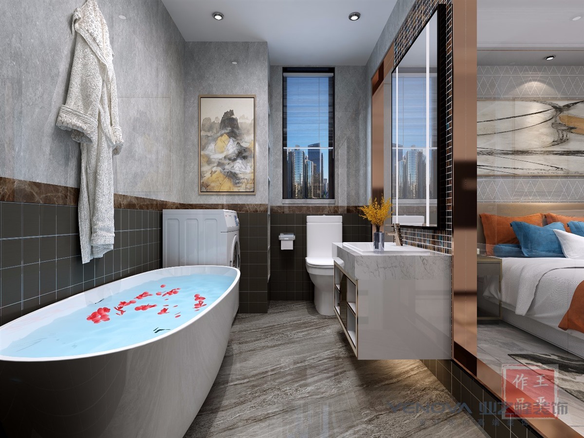 本工程主人公是一位事业成功女士,性格优雅高贵,追求以高品质、设计感、舒适、简约为风格特点的现代轻奢,在总体布局上方面尽量满足生活的需求,摒弃传统的奢华风格,回归生活本真,家居空间给人时尚简约、气质优雅且不失温馨舒适的感觉。客厅是娱乐与会客的中心,同时也是室内设计中的亮点,在本方案中,电视背景墙以大理石用精湛的工艺做出大气精致的造型,搭配深色的家具,以及奢华的灯具,窗帘等展现出一个丰富而又温馨的空间。房间采用灯带灯光照明和局部灯光照明,置身其中,舒适、温馨的感觉袭人,让那些为生活奔波的人找到了归宿。餐厅是家居生活的心脏,不仅要美观,更重要的实用性,整体性,现代酒柜更增加了餐厅的实用美观性。餐厅的灯光很重要既不能太强又不能太弱,灯光的效果恰到好处,顶部则做的圆形吊顶,加上灯带,一家人其乐融融吃饭的场景瞬间浮上眼帘。整体的设计风格上选择了简洁大方,不失高雅的现代主义风格;色调以咖色、灰色、白色为主,整体追求一种简洁大方,素雅不单调,色少而有对比的色彩搭配感觉,重点做足了业主的功能需求。设计是一个发现美与创造美的工作,室内设计一定要用心设计,从总体风格到细部装饰都要结合实际,反复推敲,反复构思,反复比较,比如一块宝石需精雕细刻一样,创造出精品,本方案通过各种元素的运用搭配灯光,窗帘等营造出一个自然、大方的空间。空间色彩以沉稳为主,因现代家具色彩比较深,这样整个居室色彩能够协调。