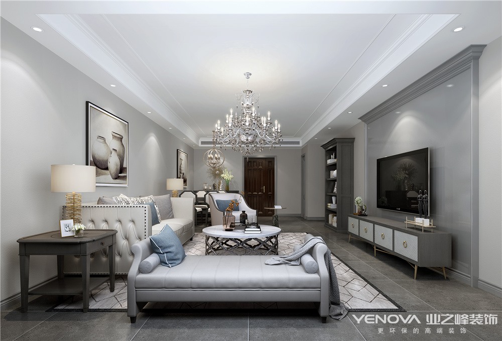 本套方案属于混搭美式,设计师营造一种低调奢华的氛围,一种既厚重华丽又具时尚特色的视觉效果。再加上家具和软饰的和谐统一,使的整个空间时尚简约但又不失奢华。