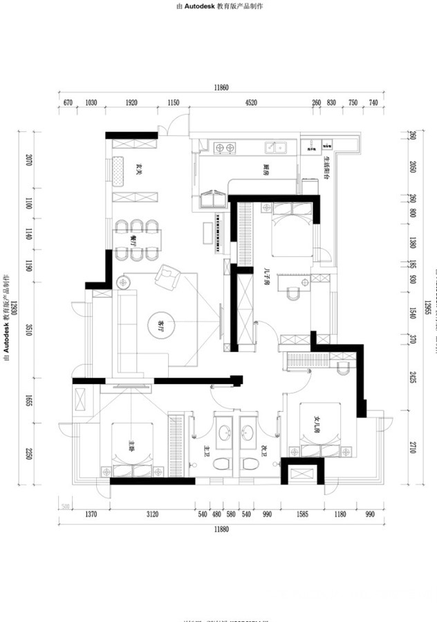 小区:金牛万达 面积:128㎡ 户型:四居 风格:美式风格