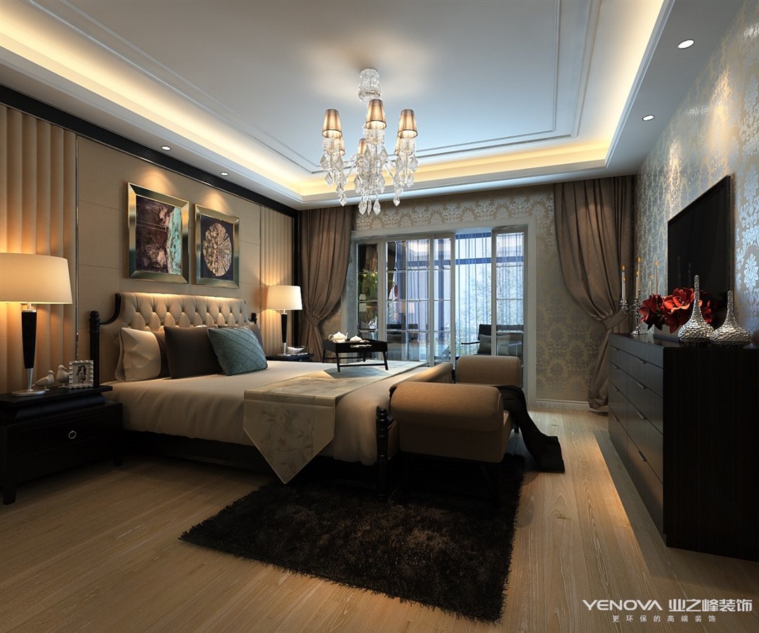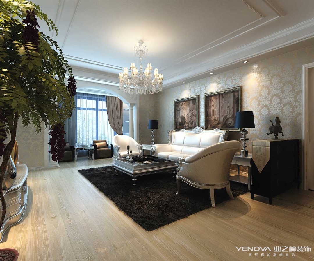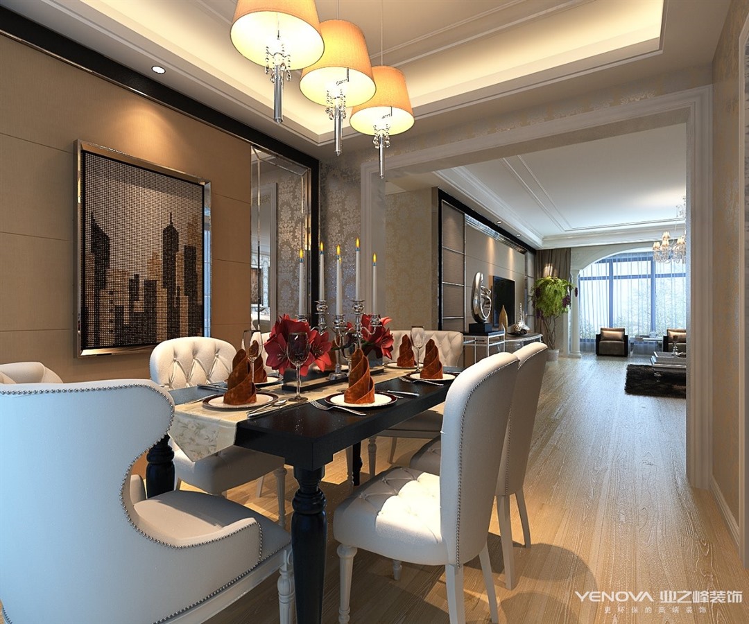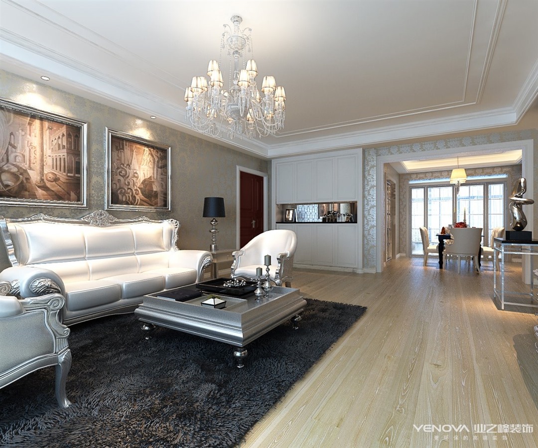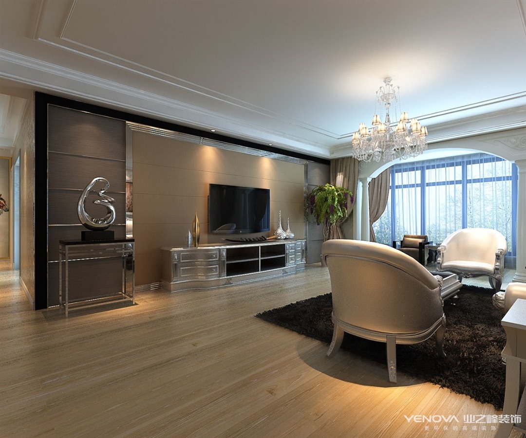 简欧风格继承了传统欧式风格的装饰特点,吸取了其风格的“形神”特征,本案在设计上追求空间变化的连续性和形体变化的层次感,室内多采用带有图案的壁纸、地毯、窗帘、床罩、帐幔及古典装饰画,体现华丽的风格。家具门窗多漆为白色,画框的线条部位装饰为线条或金边,在造型设计上既要突出凹凸感,又要有优美的弧线。