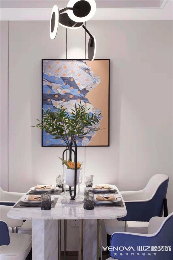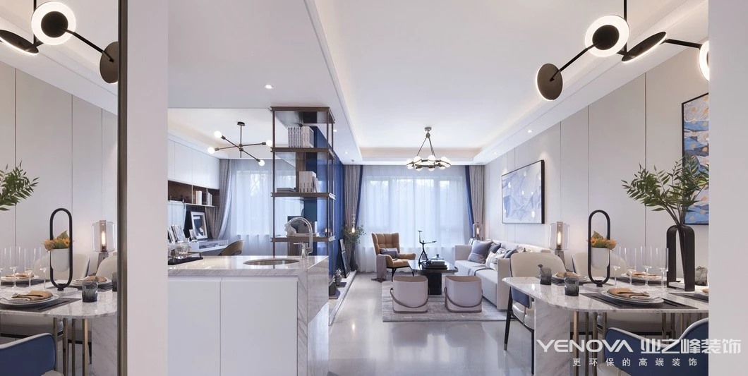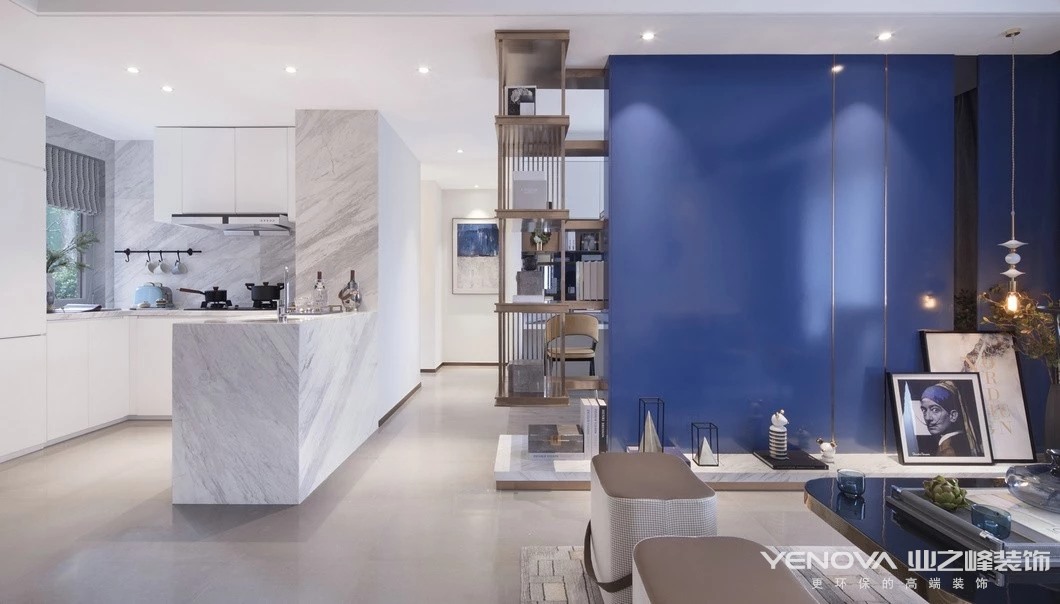 本案位于西宁市海湖新区九州河畔,这是一套102平米的三居室户型,整个空间以白色和孔雀蓝色为基调,通过明亮的对比以及射灯的运用,营造出极简恬适的居家风格,设计师在空间也对空间结构关系做了很大的调整,增加了半开放式厨房,吧台以及中置式电视墙,让客户在繁重的工作后可以在饮食上享受到生活的情趣。