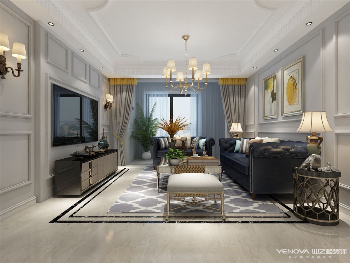 110㎡三居现代简约风格蔚蓝人家
