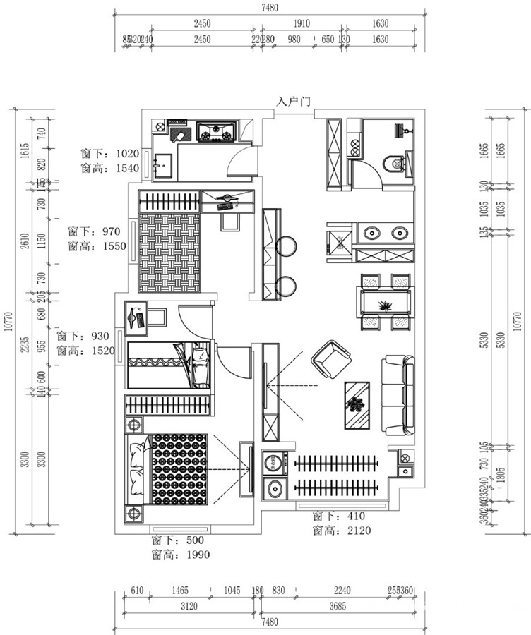 小区:宫园中央 面积:63㎡ 户型:三居 风格:新中式风格