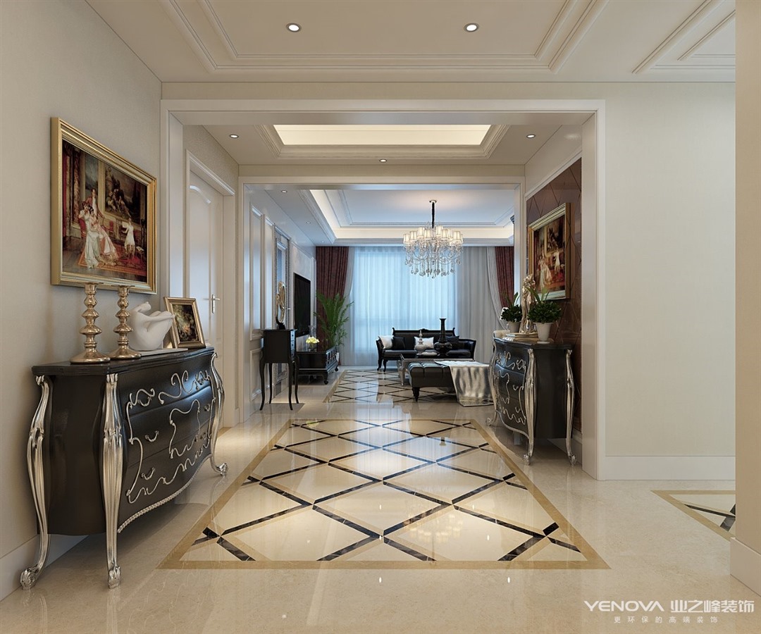 设计整体氛围大气、贴近于自然,同时也简化了的欧式装修风格,但也保留了原先欧式风格的高雅。从整体到局部、从空间到室内陈设塑造,精雕细琢。灯饰设计选择了具有西方风情的造型,比如壁灯,在整体明快、简约。单纯的房屋空间里,传承着西方文化底蕴的壁灯静静泛着影影绰绰的灯光,朦胧、浪漫之感油然而生。