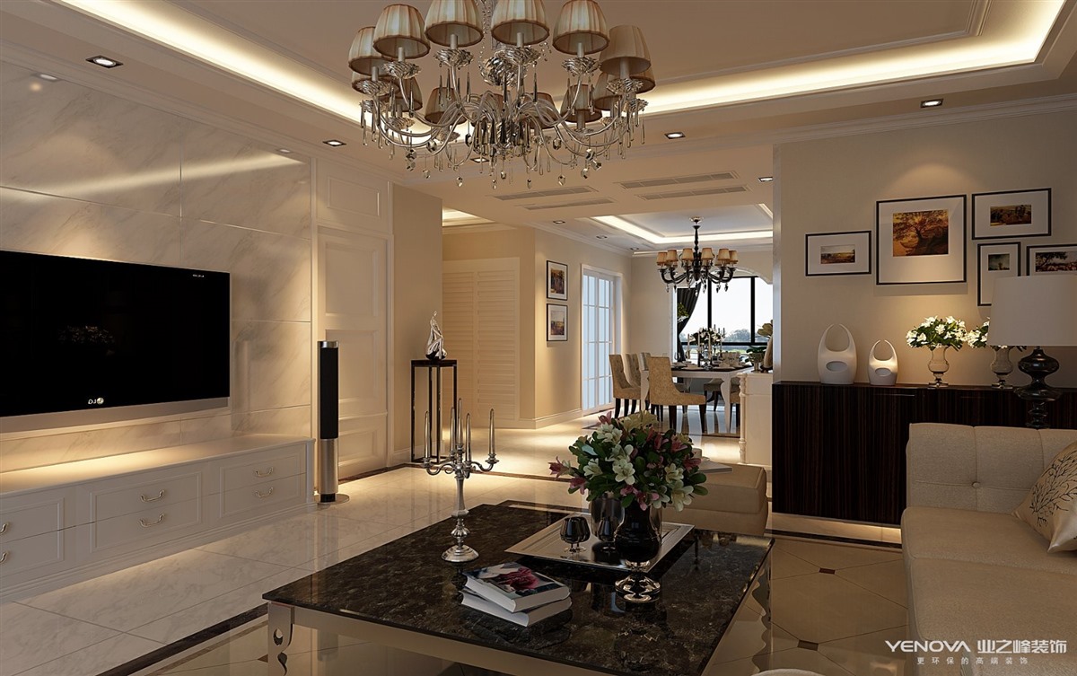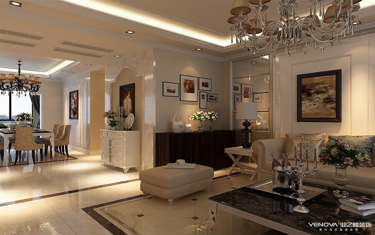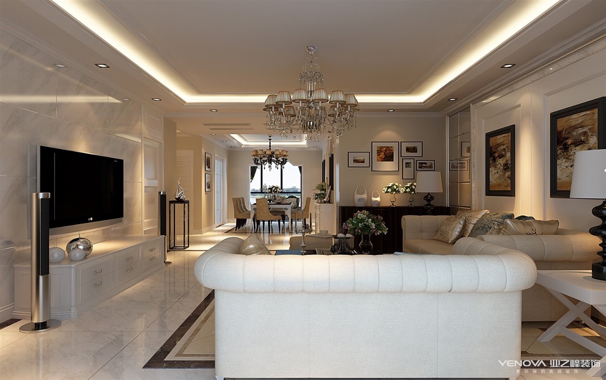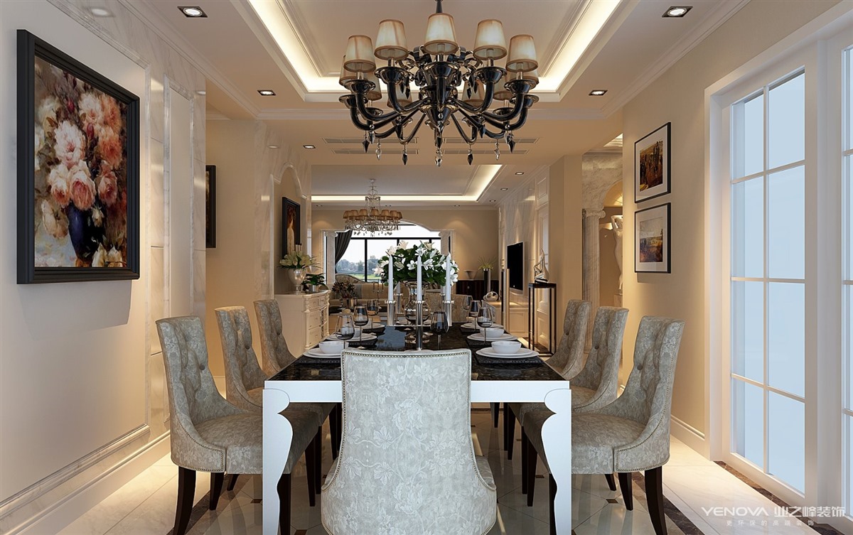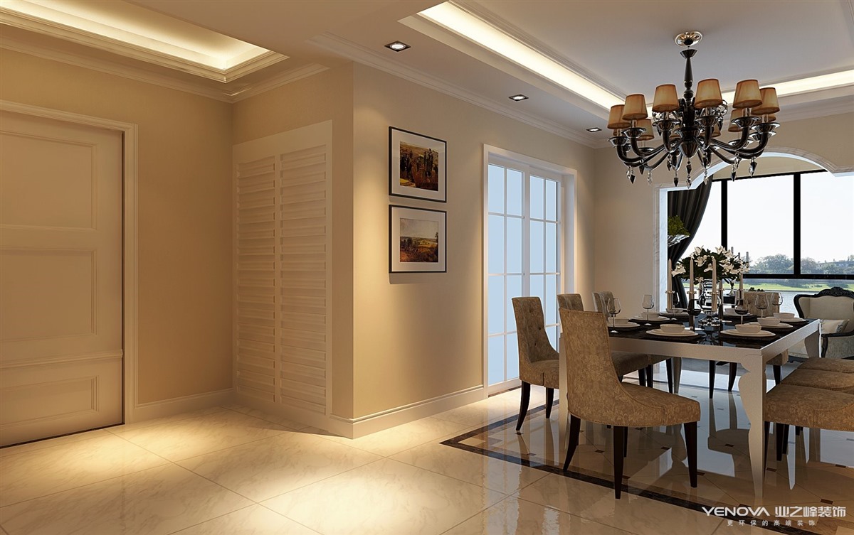 整体风格采用了传统欧式风格的装饰特点,吸取了其风格的“形神”特征,在设计上追求空间变化的连续性和形体变化的层次感,采用带有图案的壁纸、地毯、及装饰画,体现华丽的风格。家具门窗为白色,画框的线条部位装饰为线条,在造型设计上突出凹凸感,以简约的线条代替复杂的花纹,采用更为明快清新的颜色,既保留了古典欧式的典雅与豪华,又更适应现代生活的休闲与舒适。
