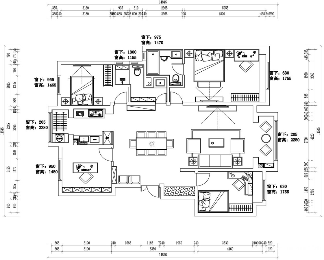 小区:金地南湖艺境 面积:170㎡ 户型:四居 风格:新中式风格