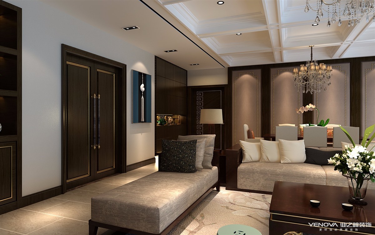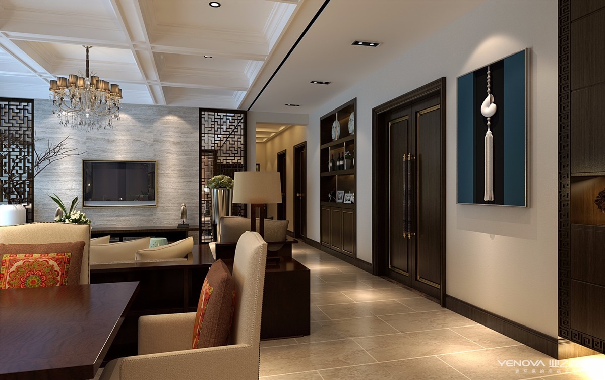 设计风格为中式风格,它有着中国几千年传统文化的支撑,在装修效果上也有许多变化。在空间设计上讲究层次,用隔窗来分割,用实木做出结实的框架,以固定支架,中间用棂子雕花,做成古朴的图案。门窗是用棂子做成中式的图案,用实木雕刻成各式题材造型,打磨光滑,富有立体感。整体设计给人庄重、华丽、优雅的感觉,透露出浓浓的中国文化的味道,也使其功能性强大,将中式元素作为一种符号来使用,大量的融入其他户型图