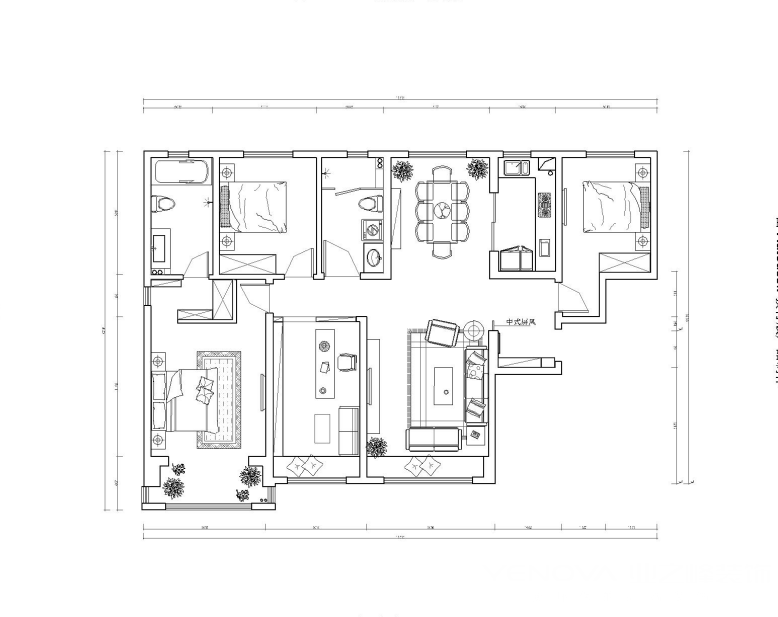 小区:中航华府 面积:160㎡ 户型:平层 风格:新中式风格