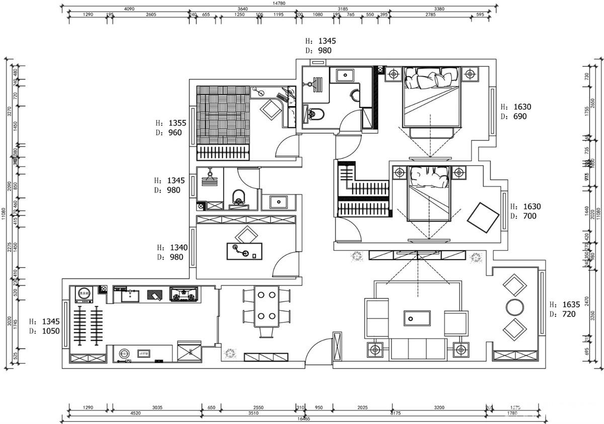 小区:雁鸣墅语 面积:147㎡ 户型:三居 风格:现代简约风格