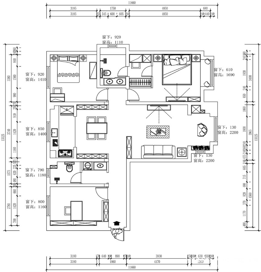 小区:中海尚城 面积:97㎡ 户型:三居 风格:简欧风格