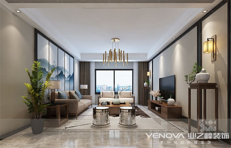 小区:融创天朗珑府 面积:139㎡ 户型:三居 风格:新中式风格