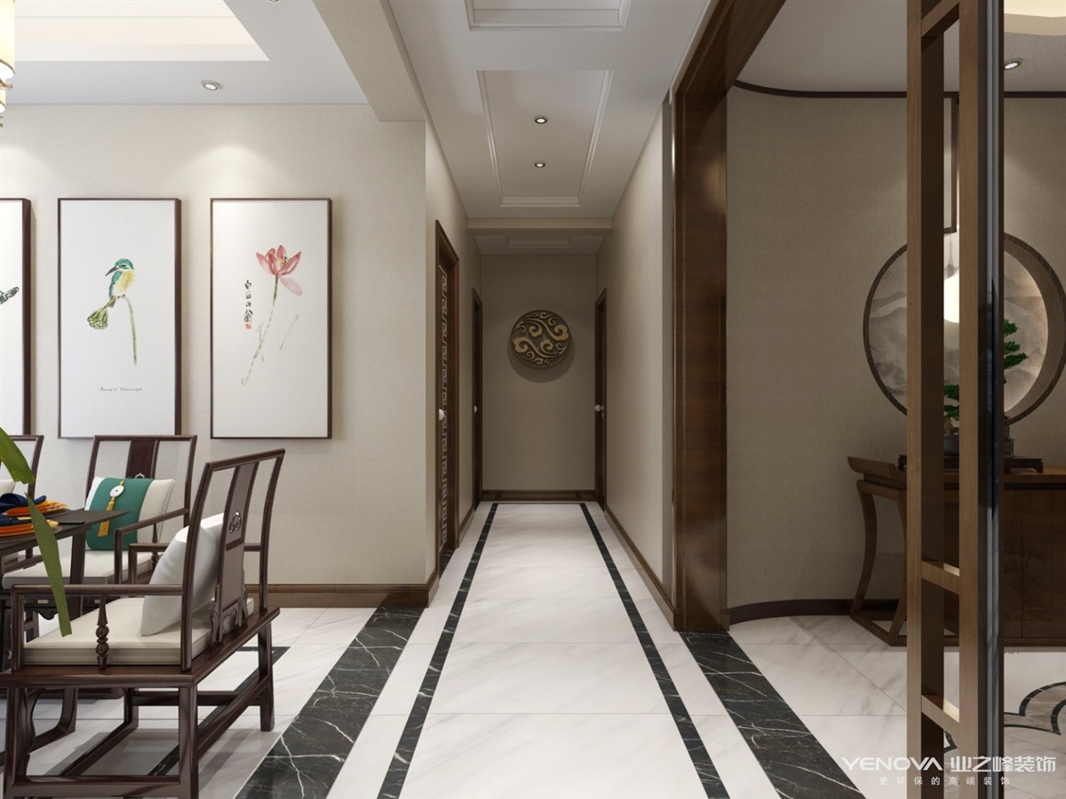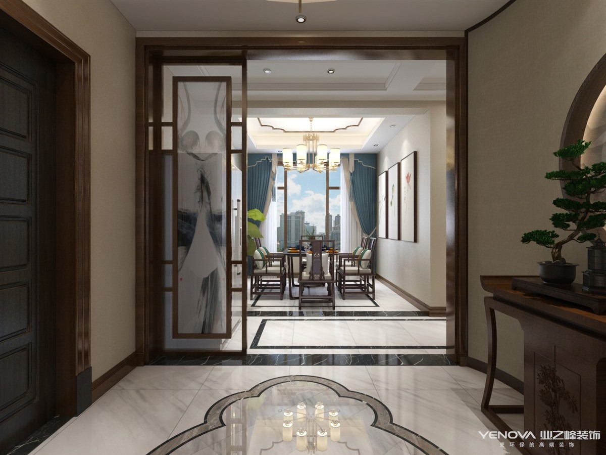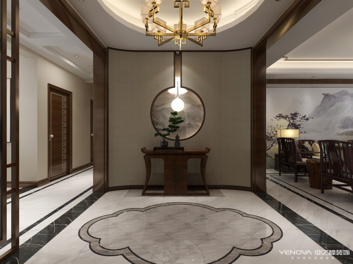 博古架,水刀拼花的地砖,云纹,圆形的玄关墙面等形式,打造一个简单,具有中式味道的安静的空间。