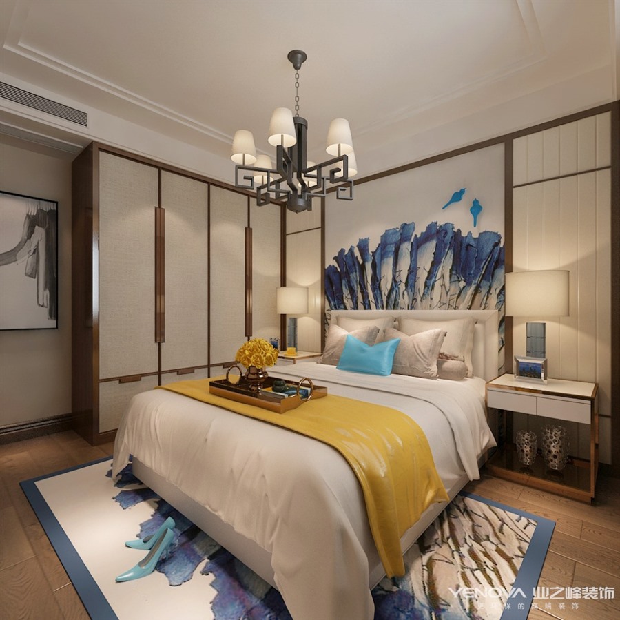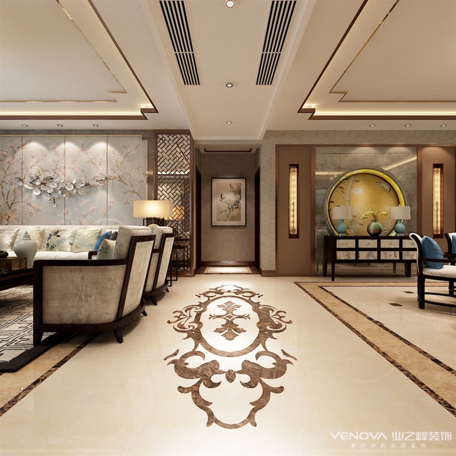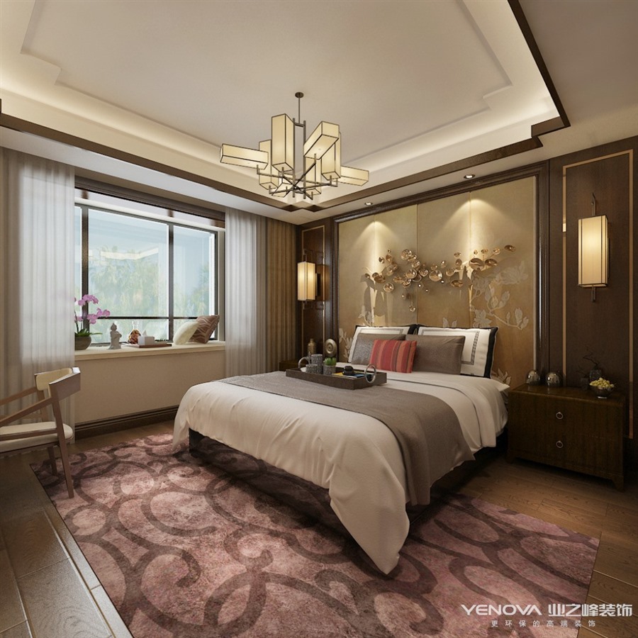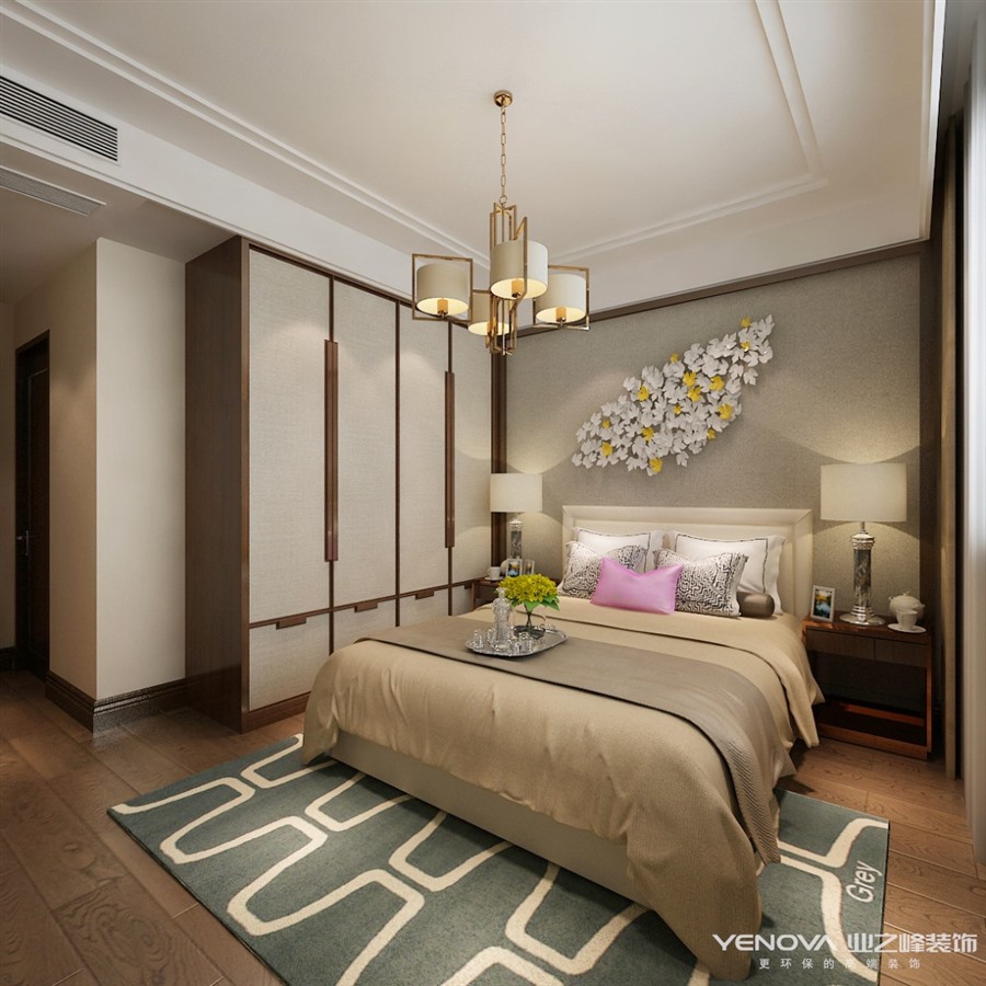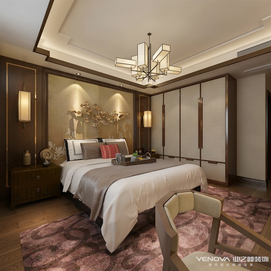 在空间造型元素中,我们充分运用中式的云纹,山水,花鸟鱼虫等图案,通过现代的手法加入其中,使样板间整体风格仍牢牢定位在中式上。